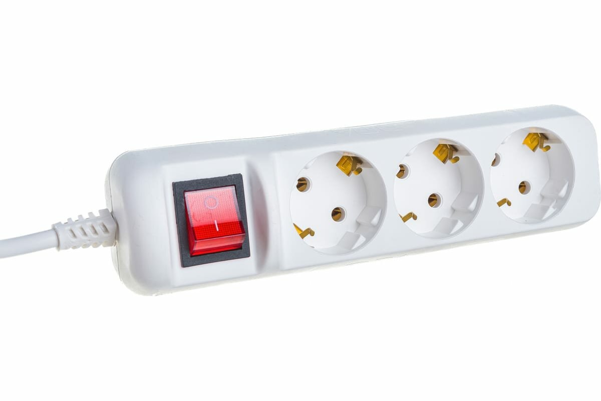 Удлинитель электрический 3 розетки 3 метра 16А ЭРА U-3es-3m с заземлением с выключателем белый