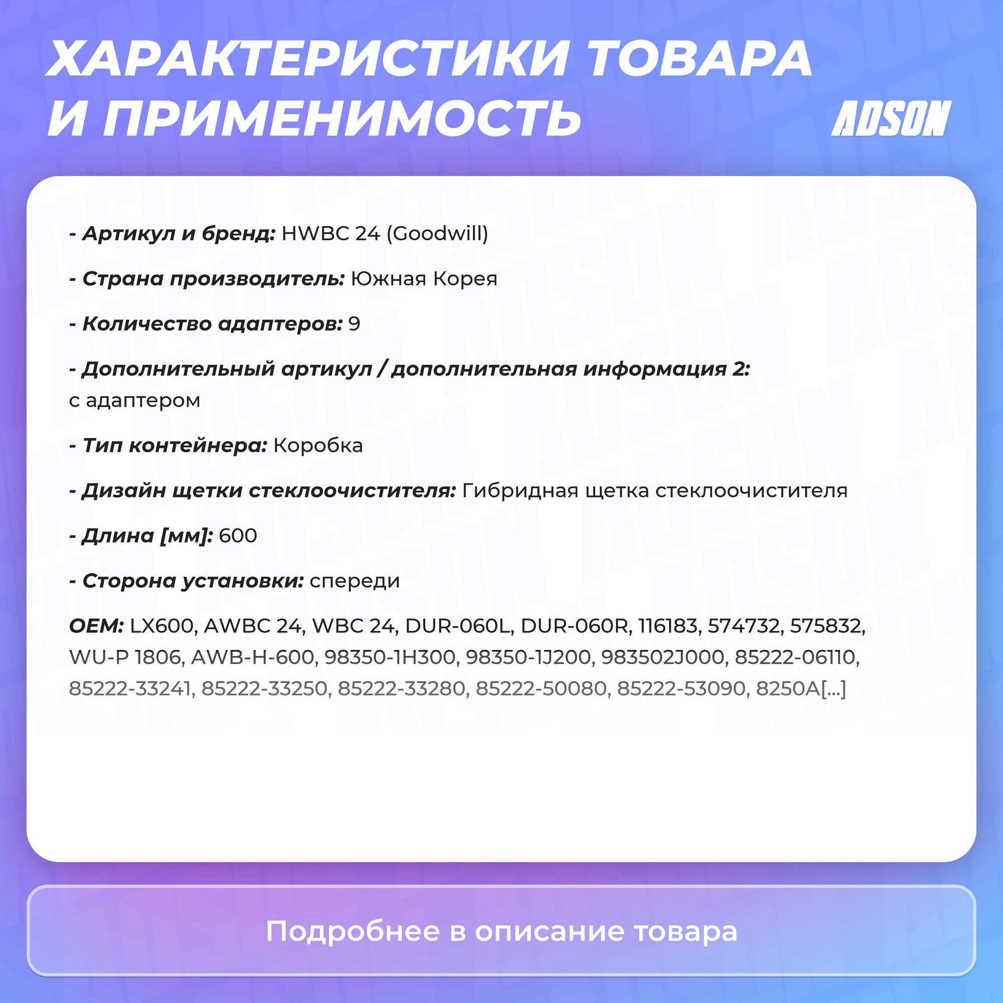 щетка стеклоочистителя 600 мм гибридная 1 шт goodwill multi-adapters hybrid wiper blade hwbc 24