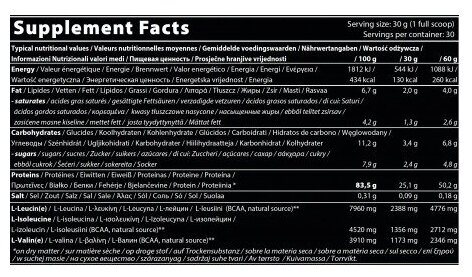 | Дополнительная информация | Хранить в недоступном для маленьких детей месте; рекомендации по применению: Ежедневно смешивайте 2 полные ложки по 30 г с 500 мл воды или обезжиренного молока утром, вечером или после тренировки. Не превышать рекомендуемую норму.; размер порции в г(мл): 30; состав: содержит молоко, эмульгаторы: соевый, подсолнечный лецитин, ароматизатор, загустители E412, E415, хлорид натрия, подсластитель: E955, натуральный ароматизатор |