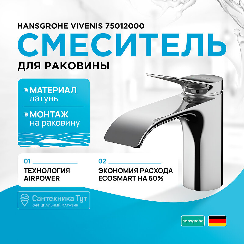 Смеситель для раковины Hansgrohe Vivenis хром глянцевый (75012000)