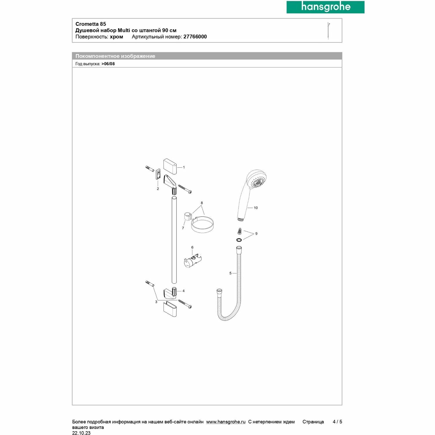 Душевой гарнитур Hansgrohe Crometta 27766000 Хром