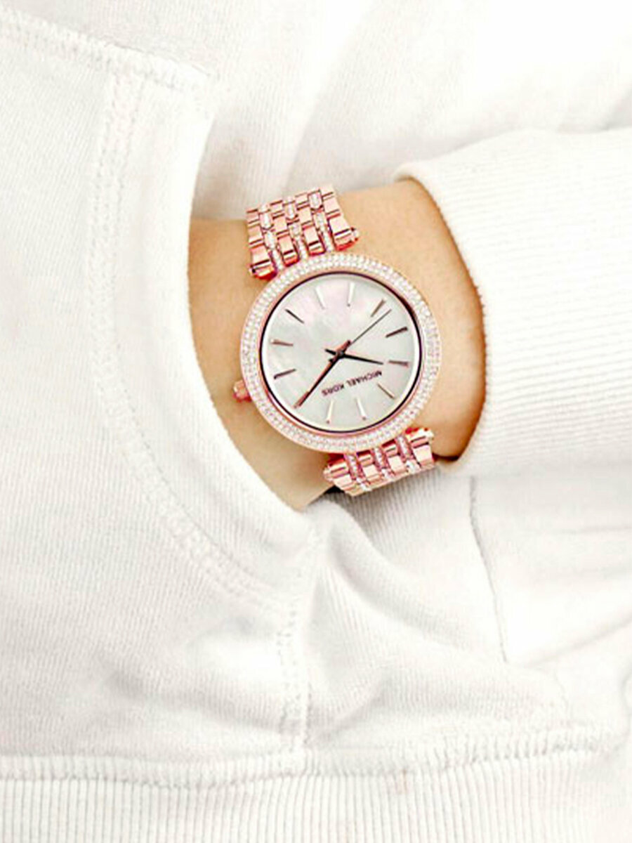 Наручные Часы Женские Michael Kors со стразами Darci серебристые с розовым золотом
