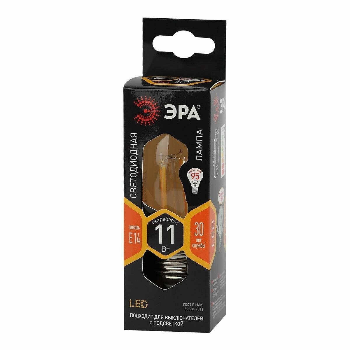 Купить Лампа светодиодная филаментная F-LED B35-11w-827-E14 B35 11Вт свеча E14 тепл. бел., ЭРА Б0046985 (1 шт.)