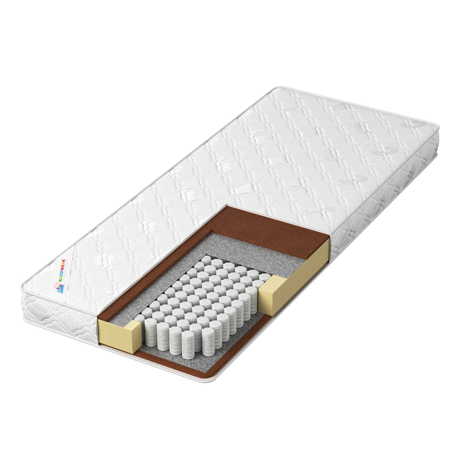 Матрас Капризун "Дрим Хард", коксовая койра 1 см с двух сторон, пружинный блок EVS 500, съемный белый чехол, 195х80х18 см