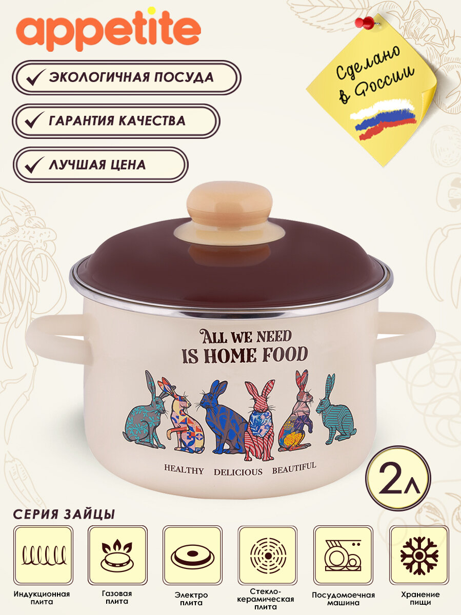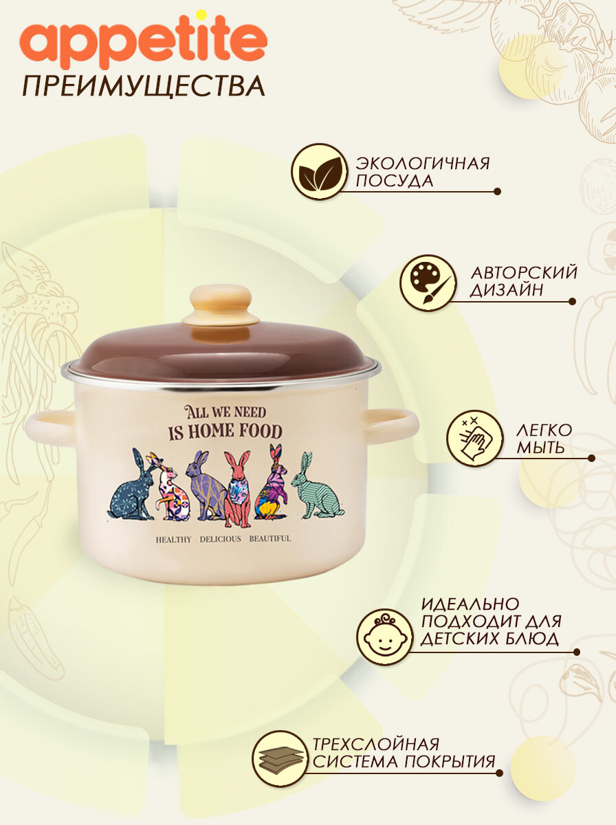 Купить Кастрюля эмалированная Appetite Зайцы, с крышкой, 2 л