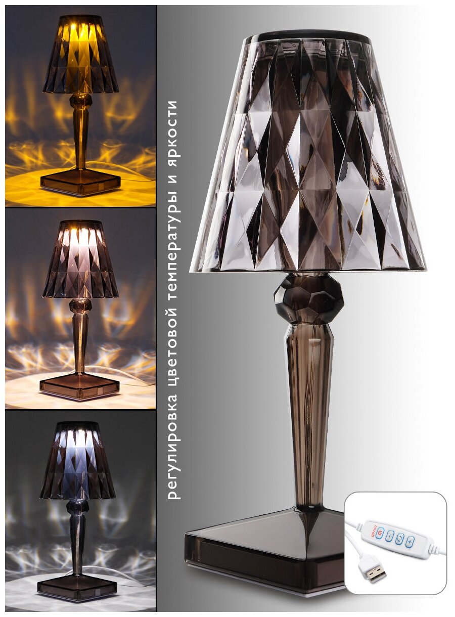 Светильник светодиодный настольный CTL1-USB 3Вт 120лм 5В 2SMD IP20 диммер: 2700-3000К/4000-4500К/6000-6500К ночник черн. кристалл акрил ФАZА 5040908