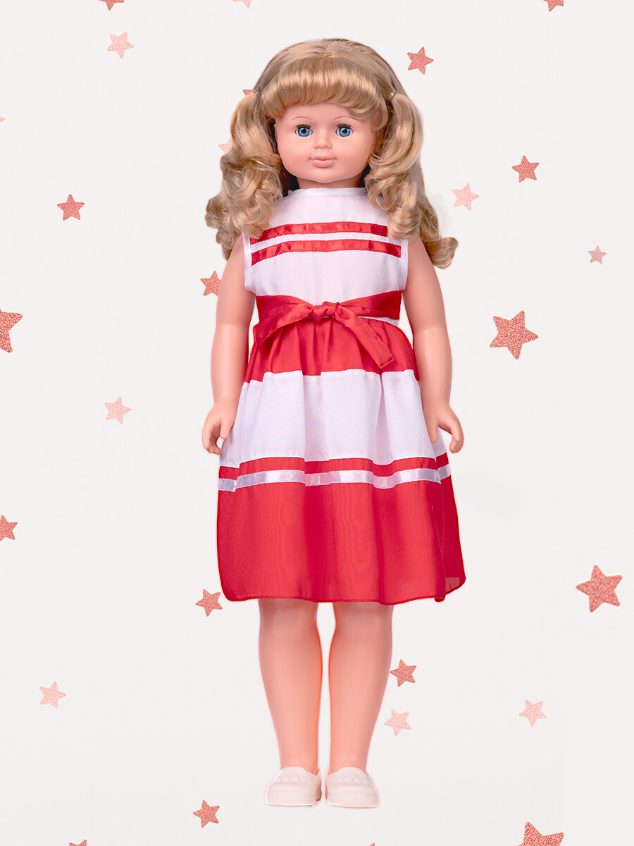 | Дополнительная информация | во избежание поломки механизма движения куклы её не рекомендуется усаживать; в комплект одежды входит: платье, туфли; материал платья: креп |