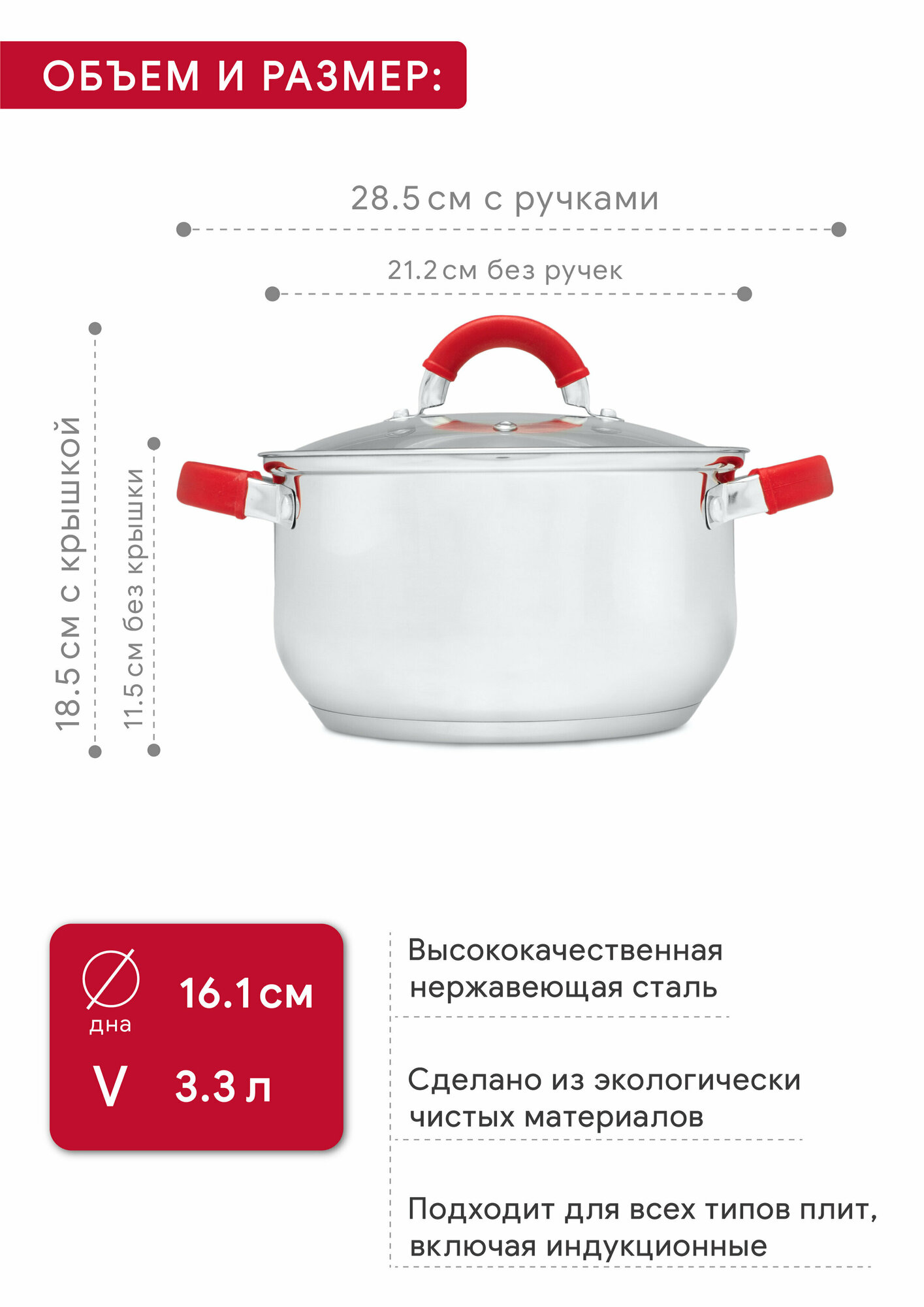 | Комплектация | 2 кастрюли 3,3 и 5,8 л с крышками |