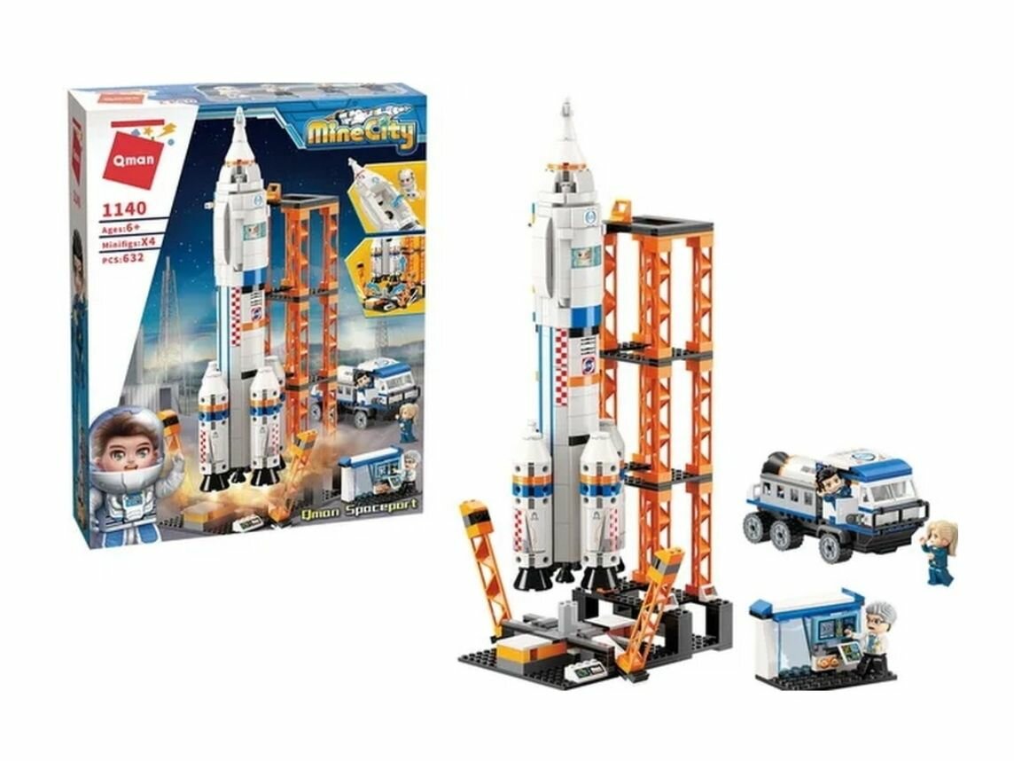 Детский блочный конструктор Космодром, 632 детали, Qman / Пластиковый игровой набор для детей, 4 фигурки