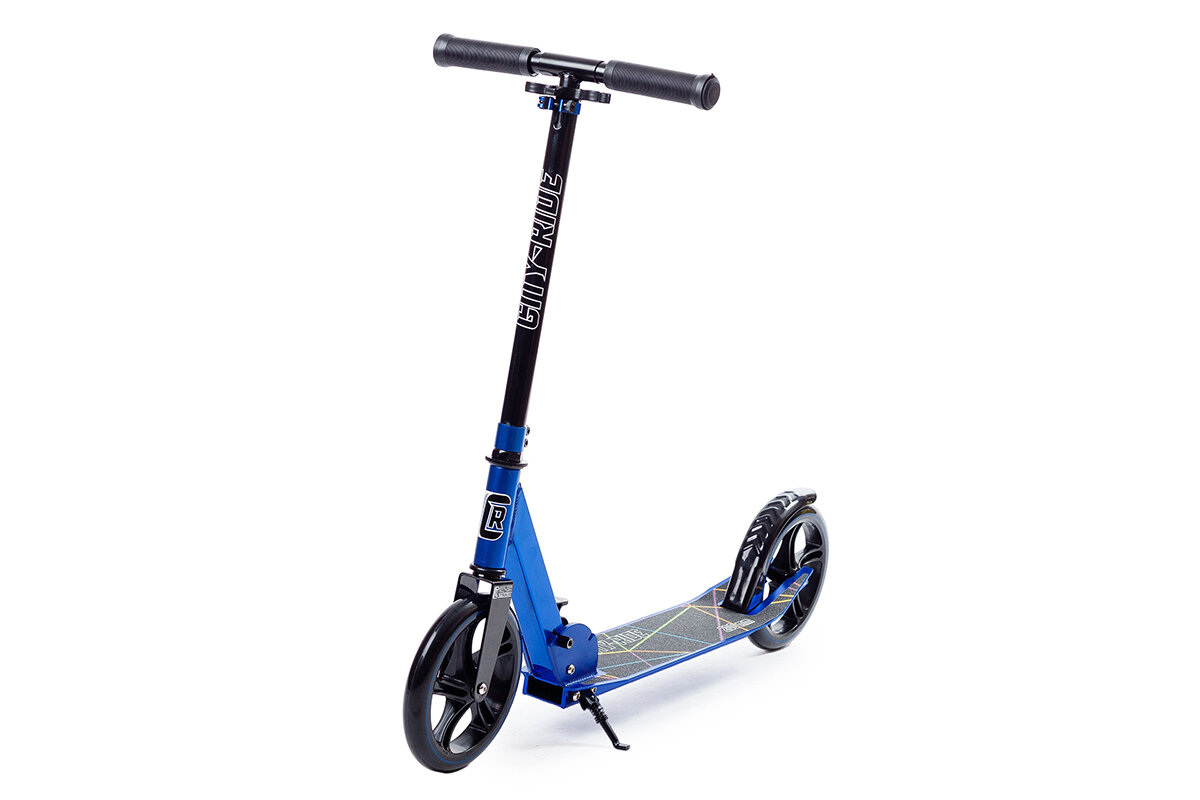Cамокат двухколесный CITY-RIDE, дека: алюминий анодированный, сталь, колеса PU 200/200, подножка, цвет синий