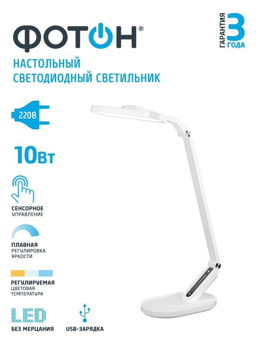 Купить Фотон Настольный светильник светодиодный сетевой TL-10DRU-W 10 Вт белый USB зарядка 24657