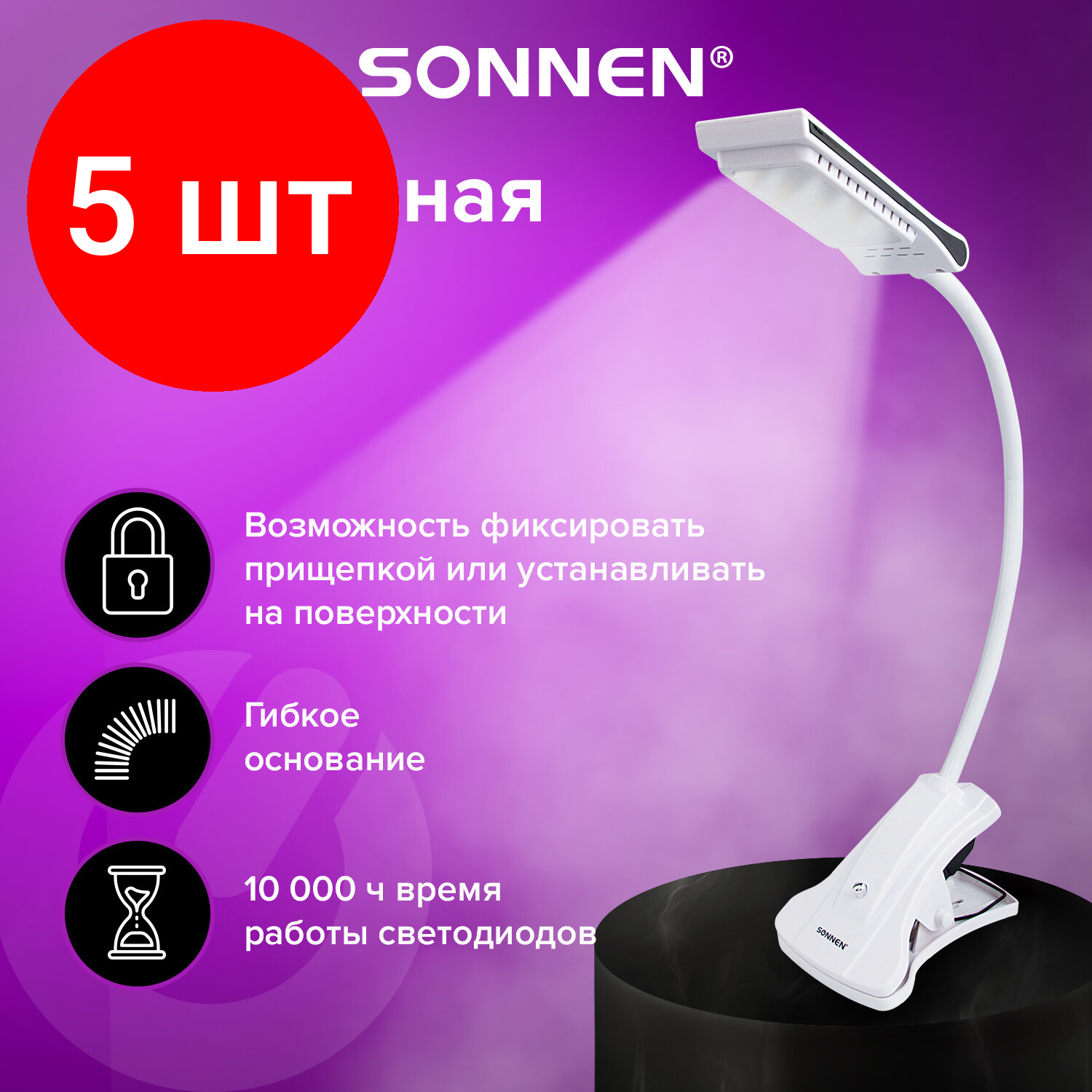 СохранитьКомплект 5 шт, Светильник настольный SONNEN OU-138, на прищепке, светодиодный, 5 Вт, белый, 236668 интересное: