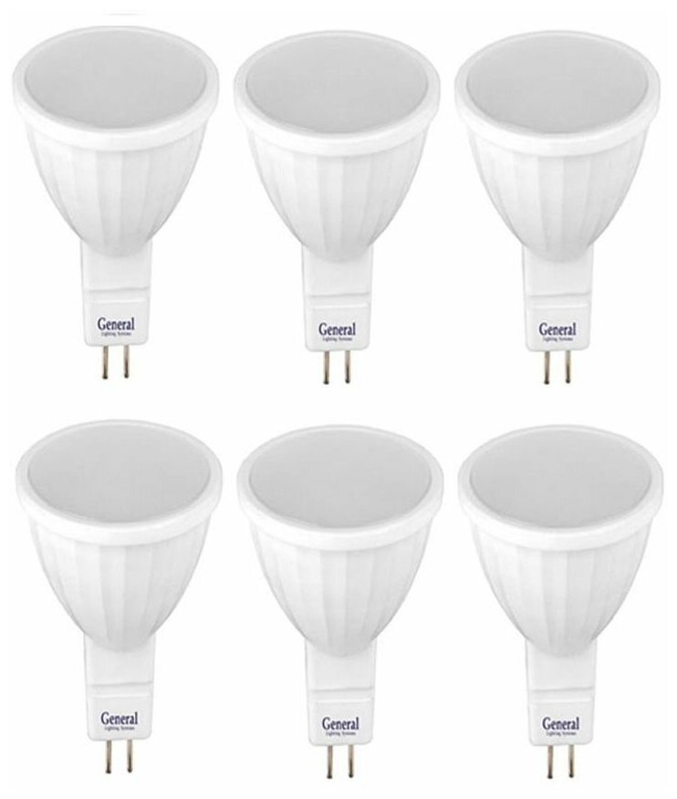 Лампочка светодиодная, General, Комплект из 6 шт., 7 Вт, Цоколь GU5.3, 3000К, Форма лампы Круг, MR16