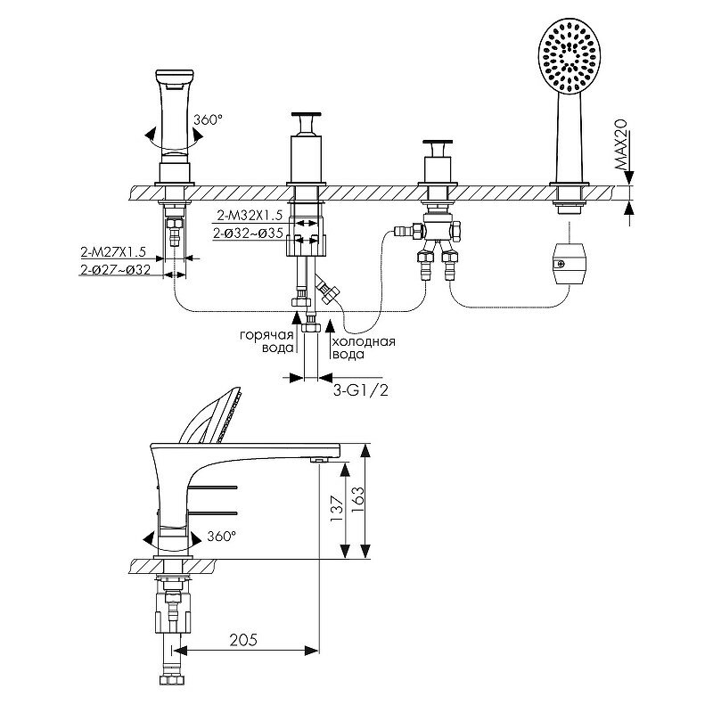 | Управление смесителем | рычажное |
