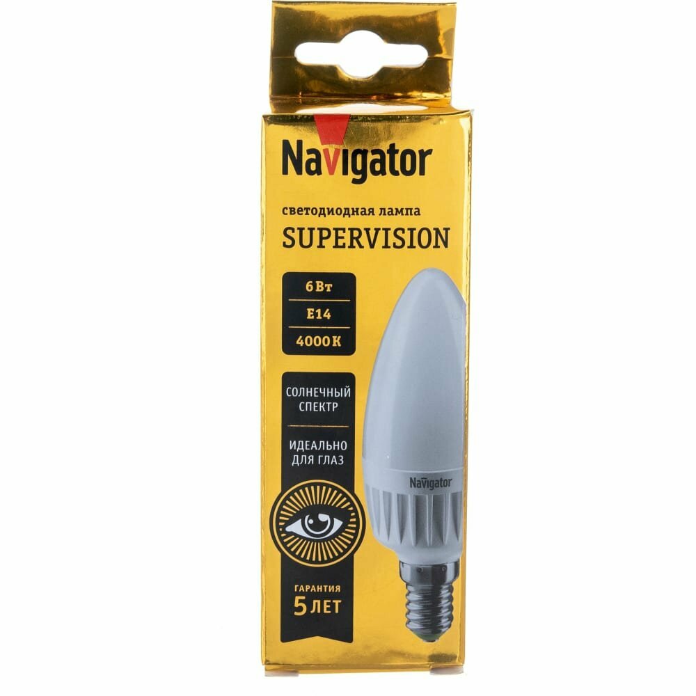 Лампа светодиодная солнечного спектра Navigator 80 546 Supervision, свеча, 6 Вт, E14, дневного света 4000К, 1 шт.