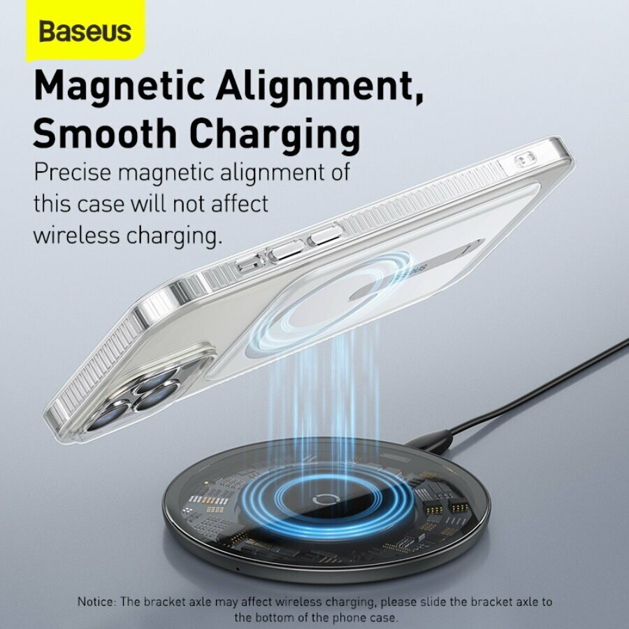 Чехол Baseus Magnetic Phone Case для iPhone 13 Pro 6.1, прозрачный, с подставкой, Mag Safe
