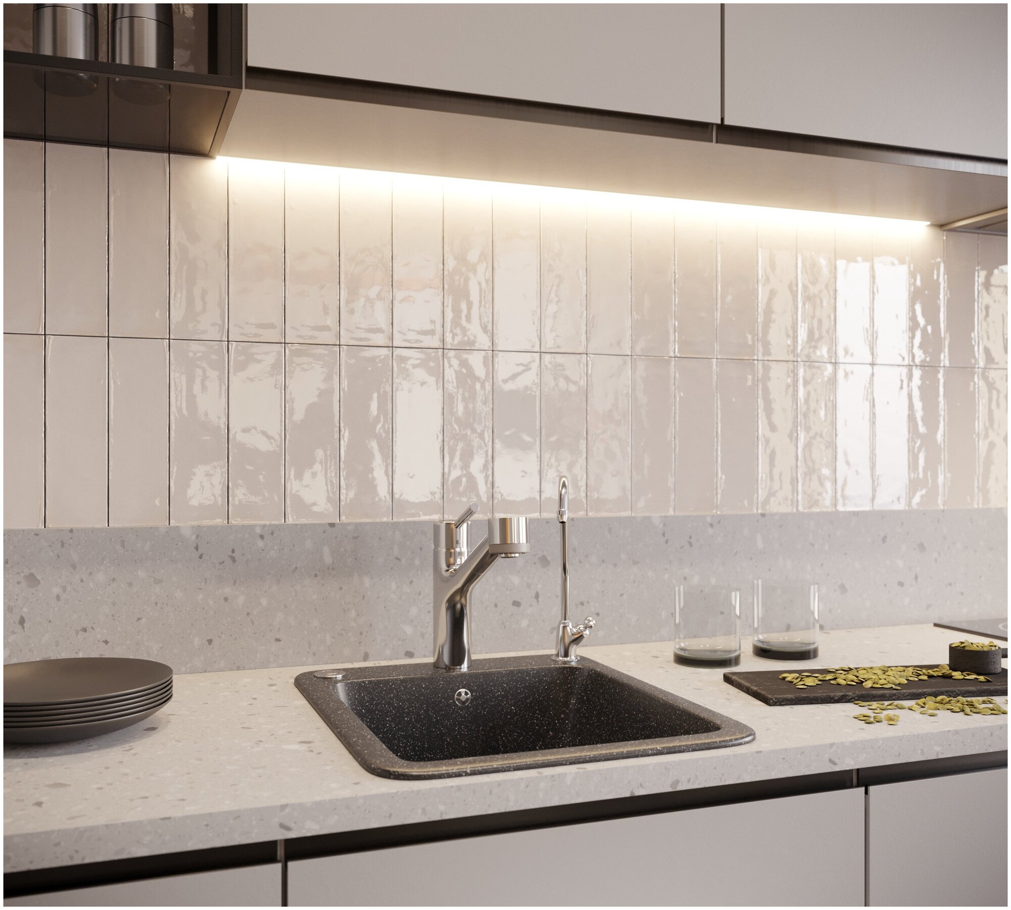 Мойка мрамор VERTEX GF-V--680L чаша с крылом 680*500мм серый GRANFEST