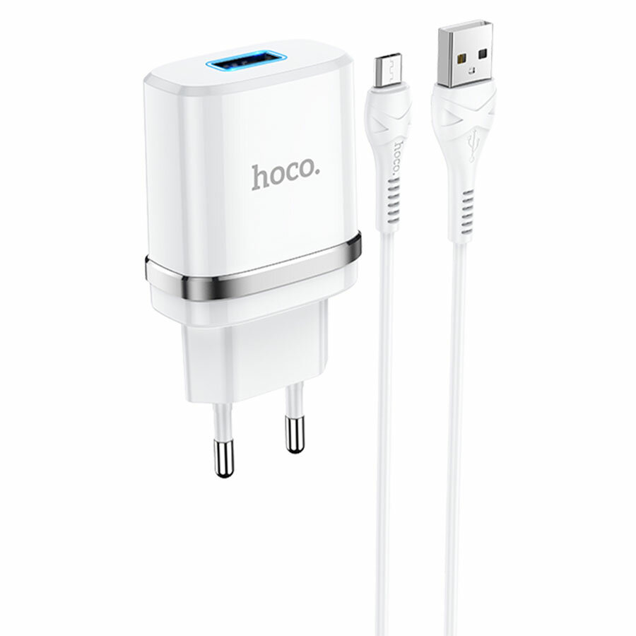 Сетевое зарядное устройство Hoco N1, 1 USB, 2.4 А, кабель Micro USB -USB, 1 м, белое