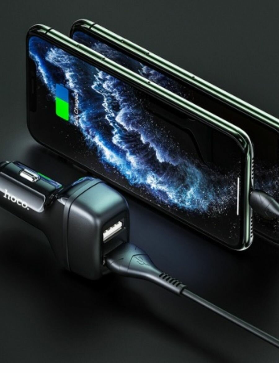 Автомобильное зарядное устройство Hoco Z36 Leader + кабель Lightning, черный