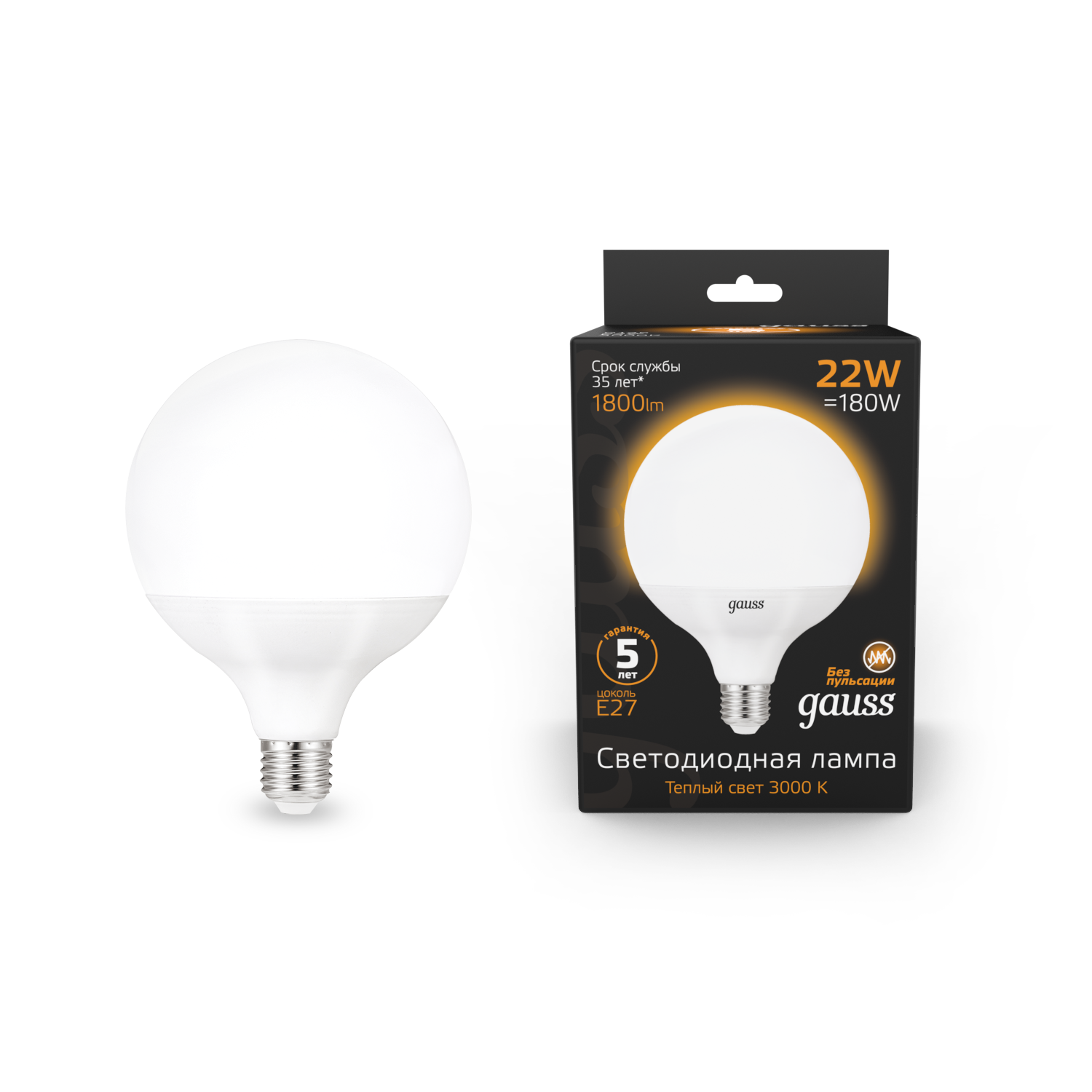 Купить Gauss Лампа G125 22W 1800lm 3000K E27 LED