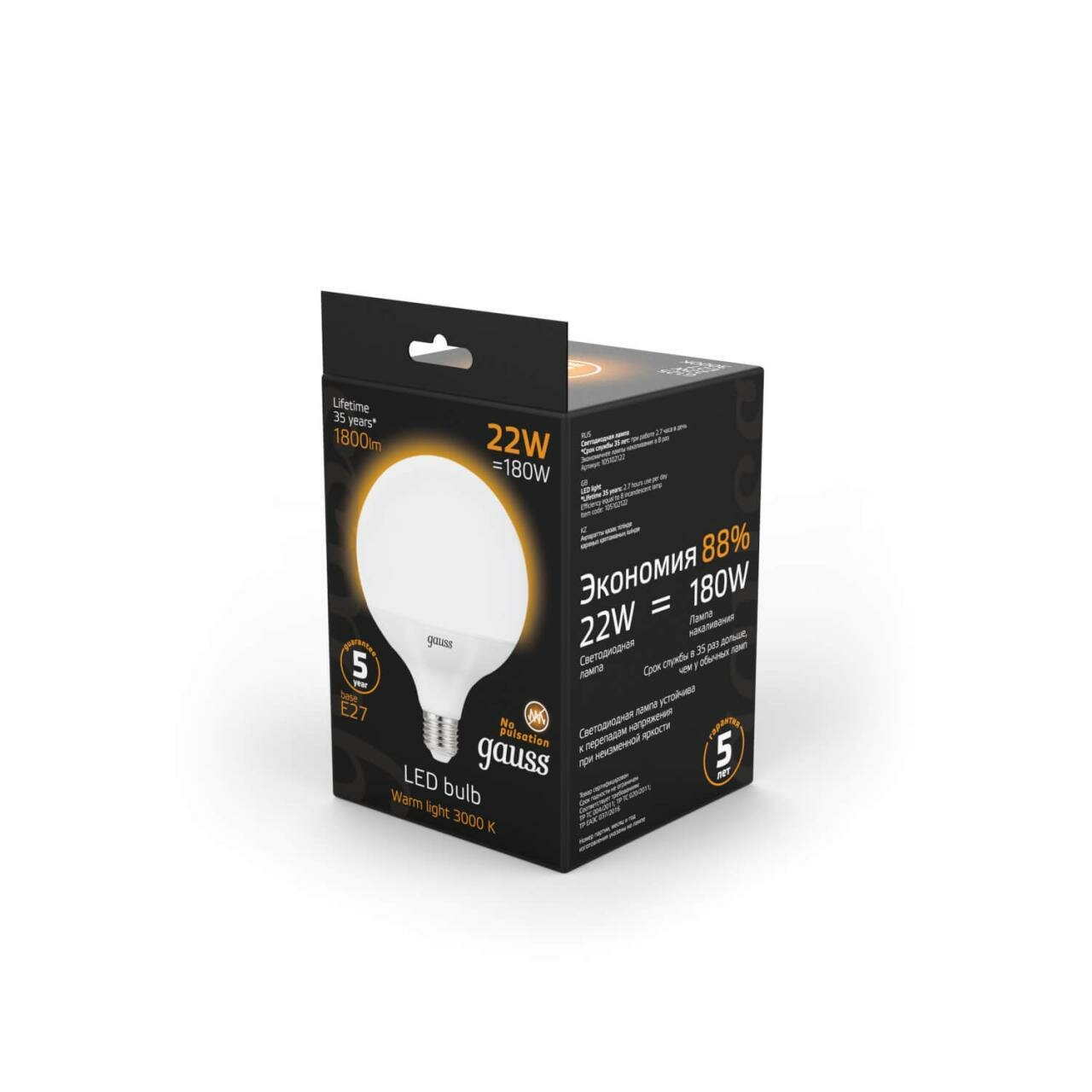 Лампа светодиодная gauss 105102122, E27, G125, 22 Вт, 3000 К
