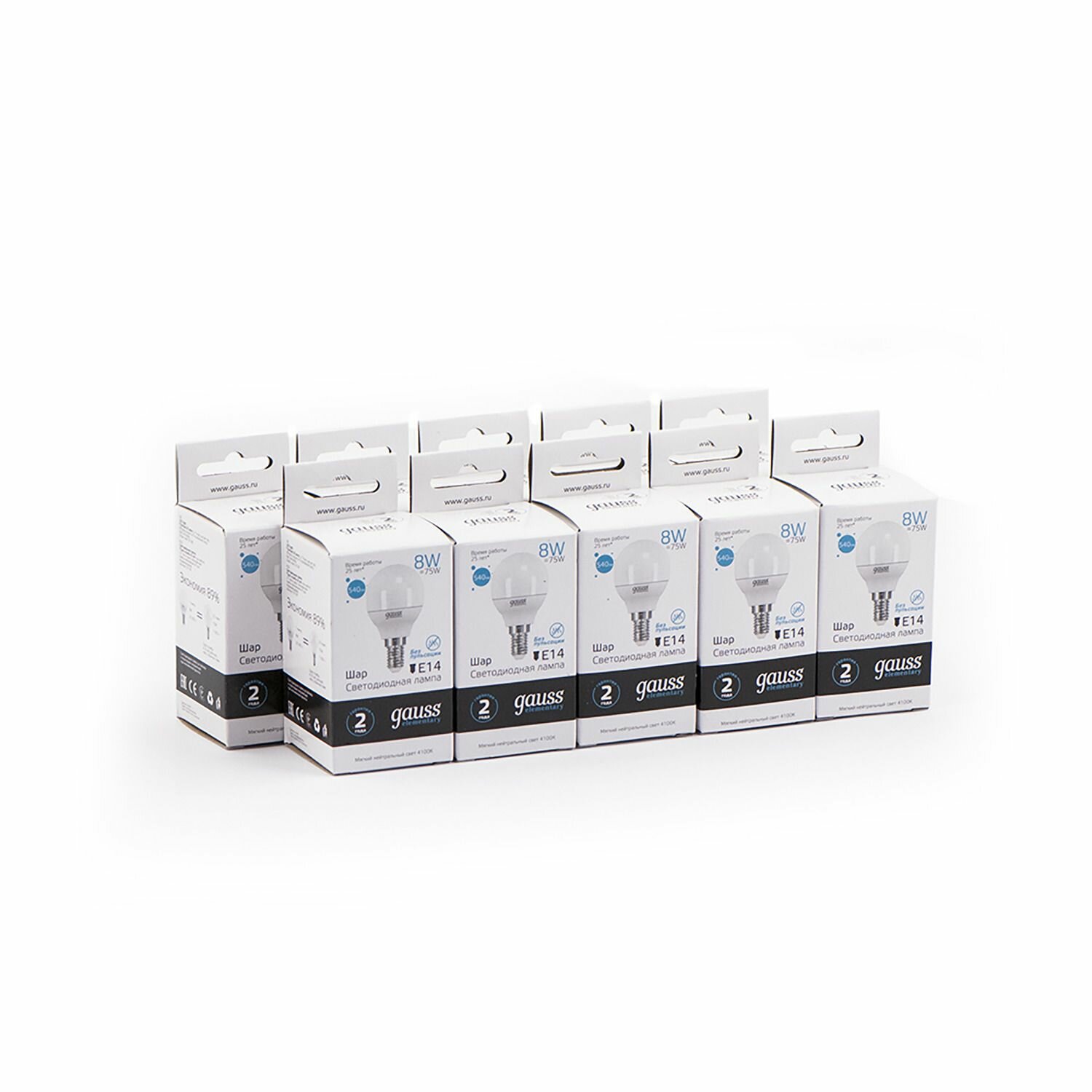 Упаковка ламп LED GAUSS E14, шар, 8Вт, 10 шт. [53128]