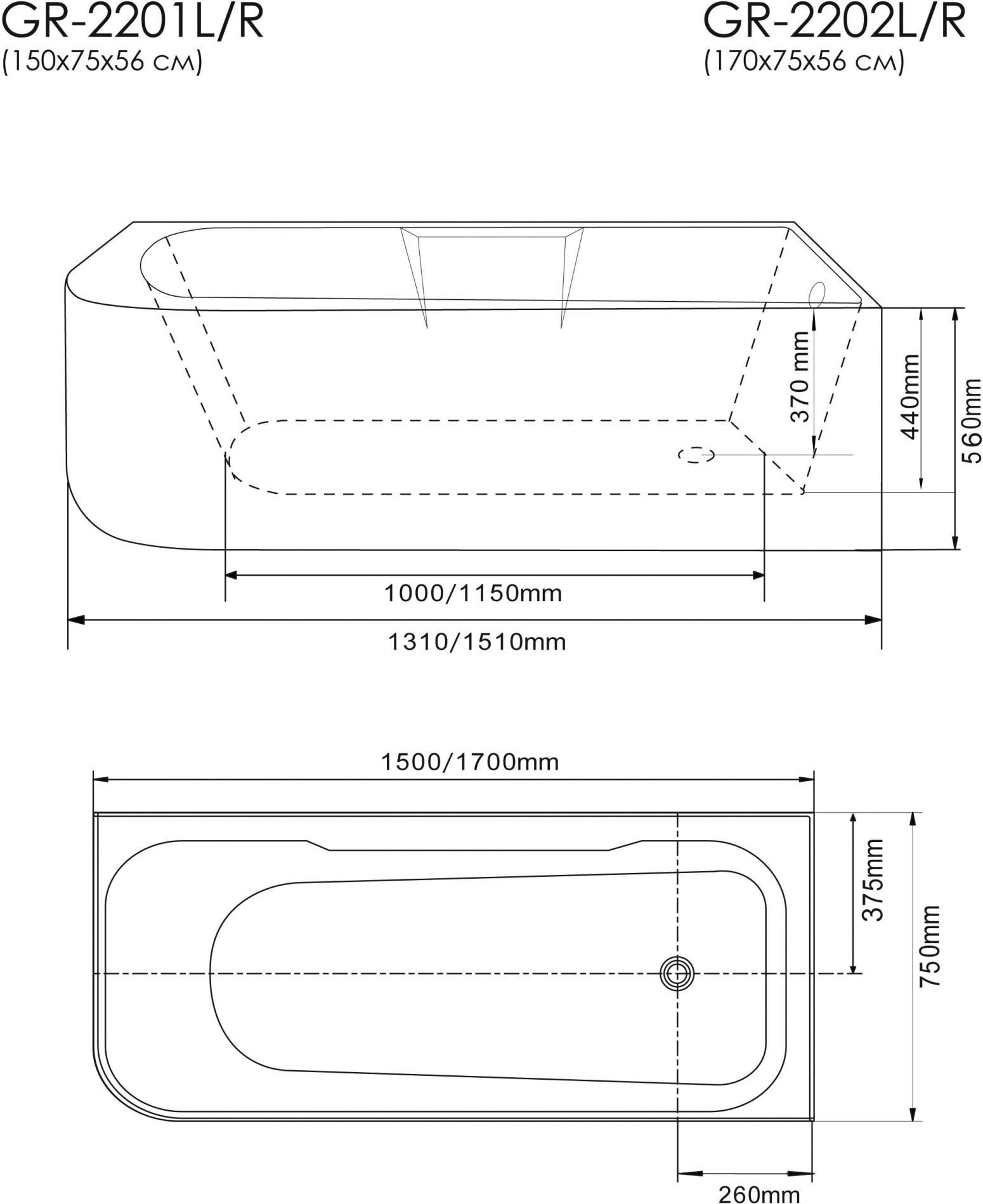 Ванна пристенная Grossman GR-2202L 75x170x56