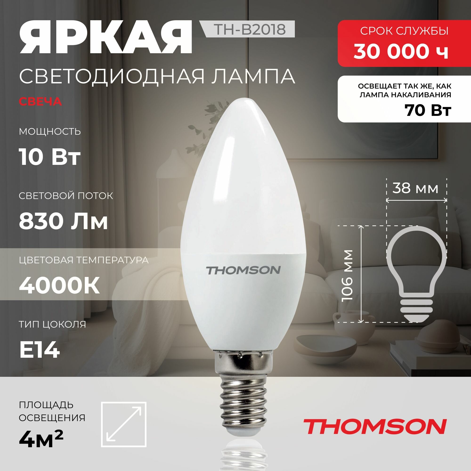 Купить Лампочка Thomson TH-B2018 10 Вт, E14, 4000K, свеча, нейтральный белый свет