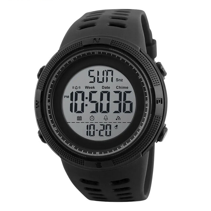 Часы наручные SKMEI 1251 черные, Спортивные, водонепроницаемые, электронные, будильник, подсветка, таймер, секундомер
