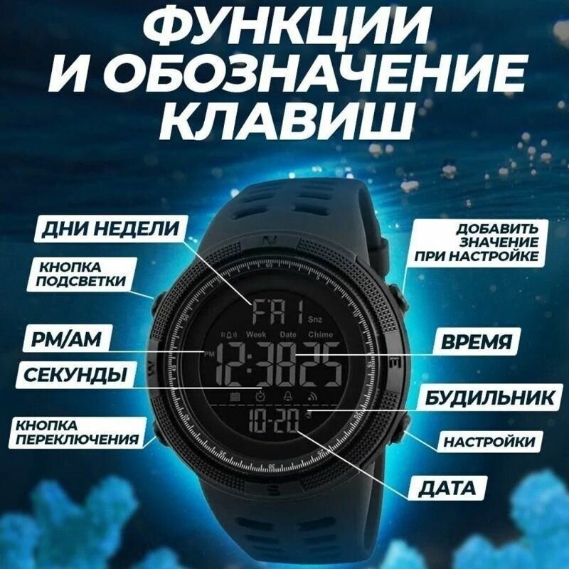 Часы мужские SKMEI 1251, водонепроницаемые, цвет синий милитари. Часы электронные.