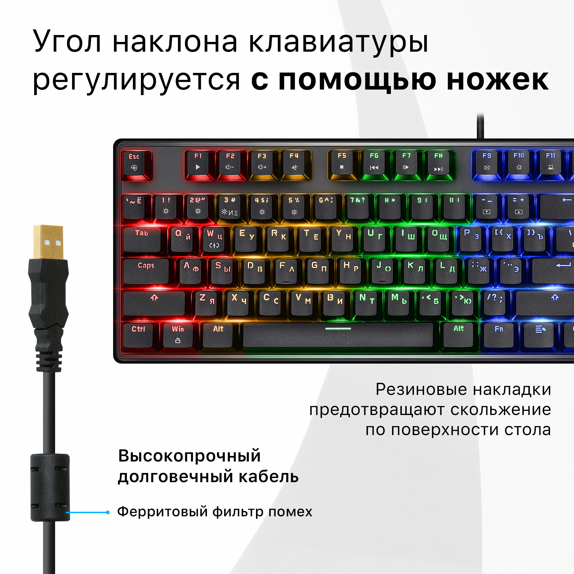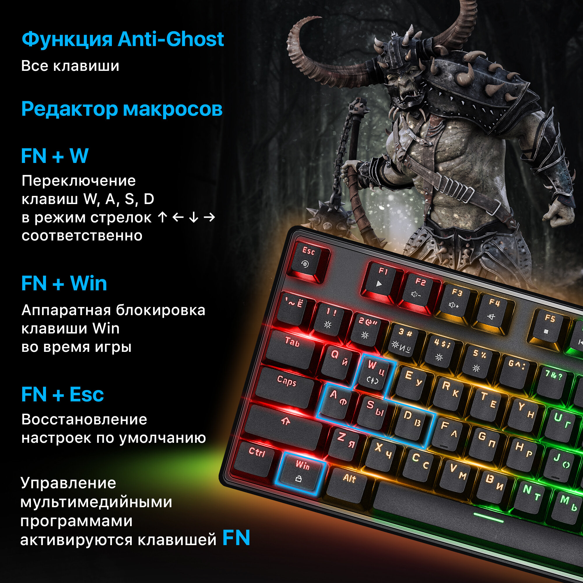Клавиатура игровая Defender Reborn GK-165DL RU механическая 104 кл, литые буквы, кабель 1.5 м