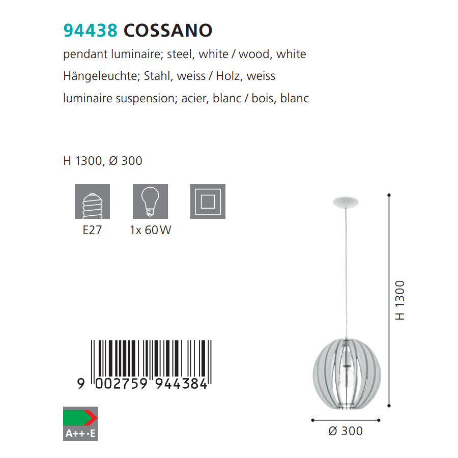Светильник подвесной Eglo Cossano 94438, Белый, E27 60