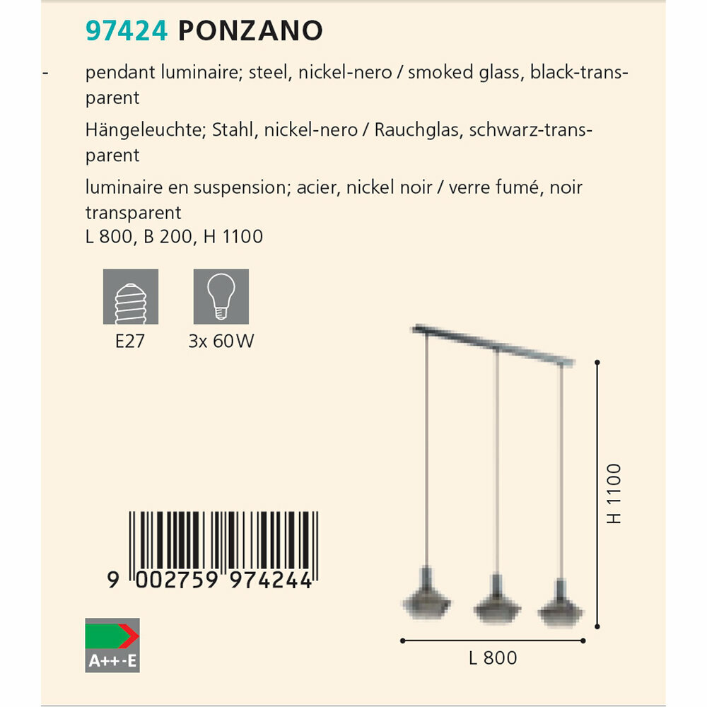 Подвесной светильник Eglo промо Ponzano 97424