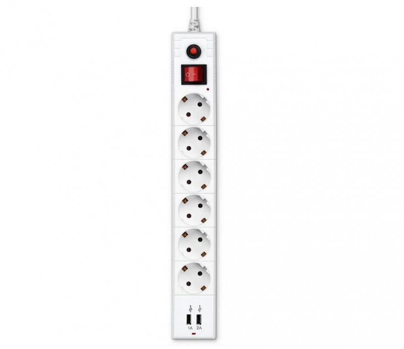 Сетевой фильтр Buro BU-SP1.8_USB_2A-W 1.8 м, (6 розеток), белый