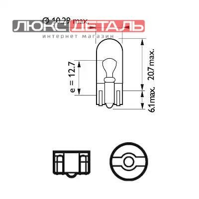 Лампа автомобильная накаливания Bosch 1987301028 W3W 12V 3W W2.1×9.5d 2 шт.