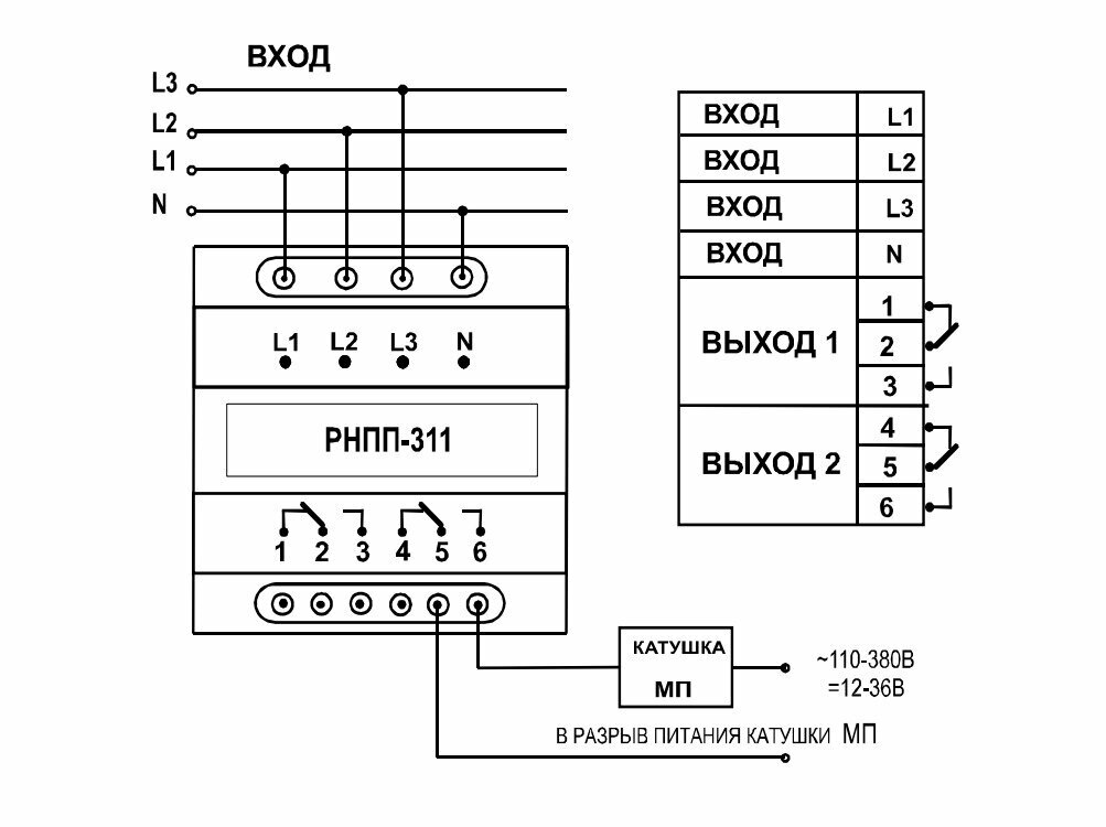 Реле напряжения, перекоса и последовательности фаз РНПП-311