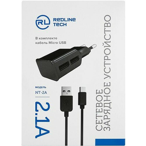 Зарядное устройство сетевое Red Line NT-2A 2 USB 2.1А черный + кабель MicroUSB