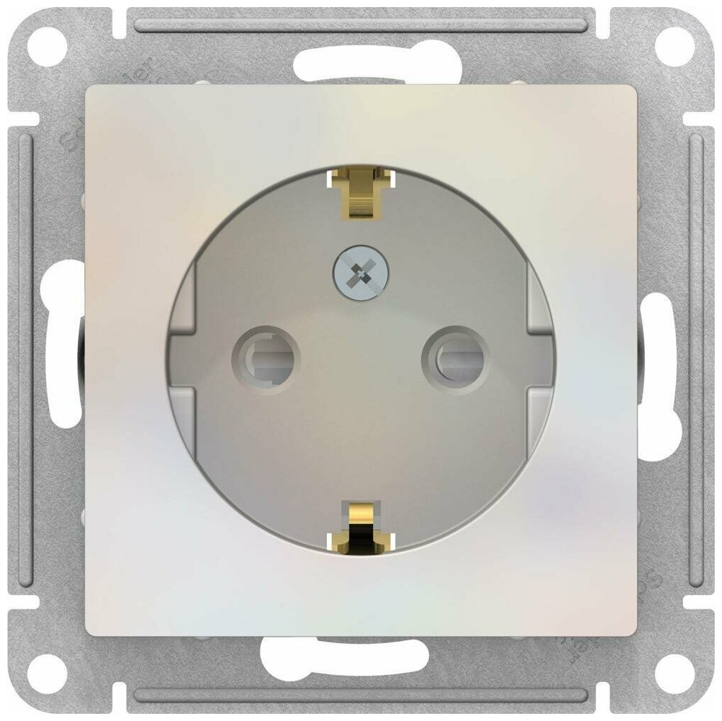 Розетка ATLASDESIGN, скрытый монтаж, с заземлением, со шторками, жемчуг | код. ATN000445 | Schneider Electric (4шт. в упак.)