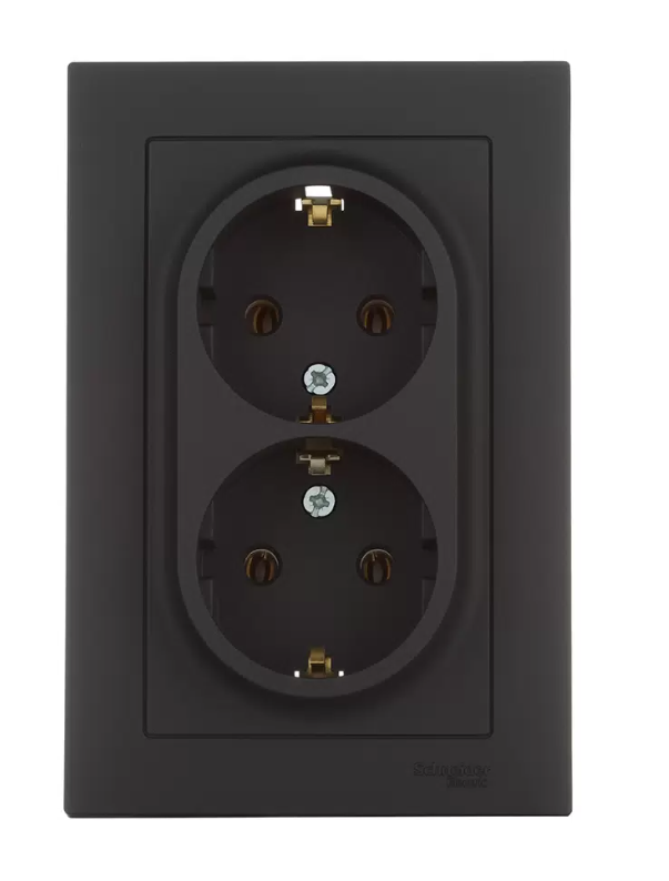 Розетка электрическая двухместная Systeme Electric Atlas Design с заземлением, в сборе 16А, Карбон ATN001024 - 10 шт.