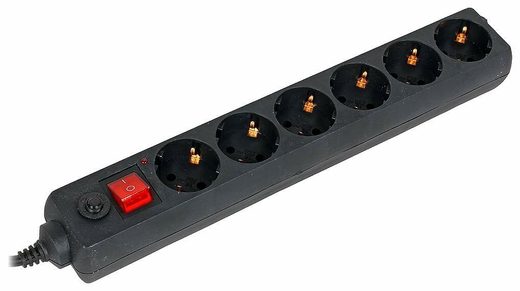 Сетевой фильтр Buro 1.8м (6 розеток), черный