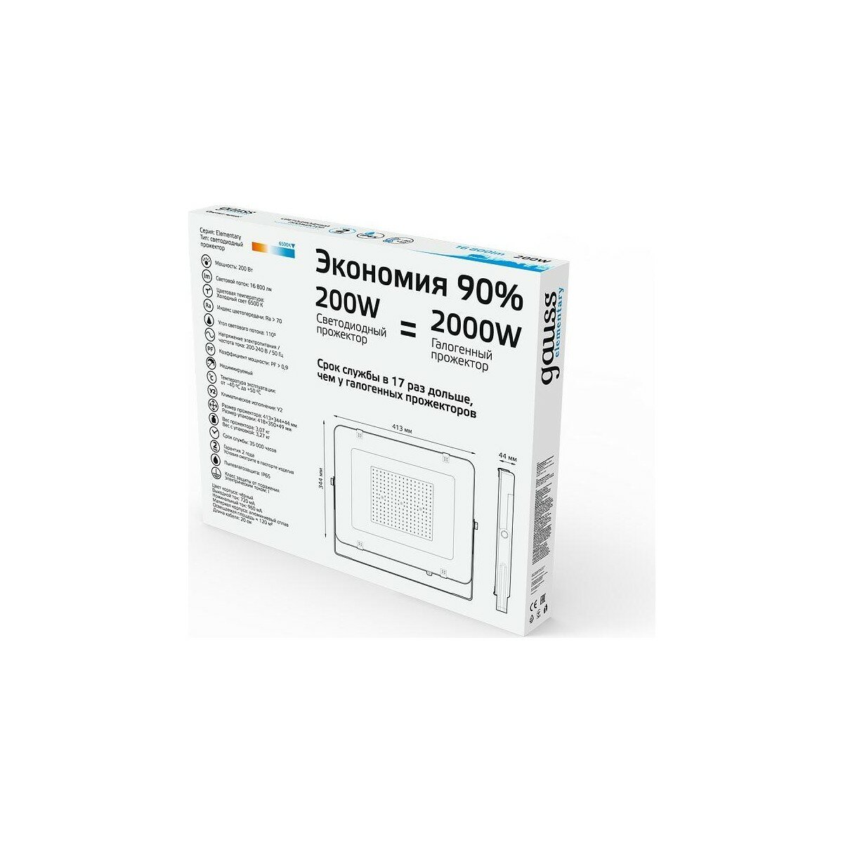 Прожектор GAUSS Elementary 200w 16800lm 6500к 200-240v ip65 черный led