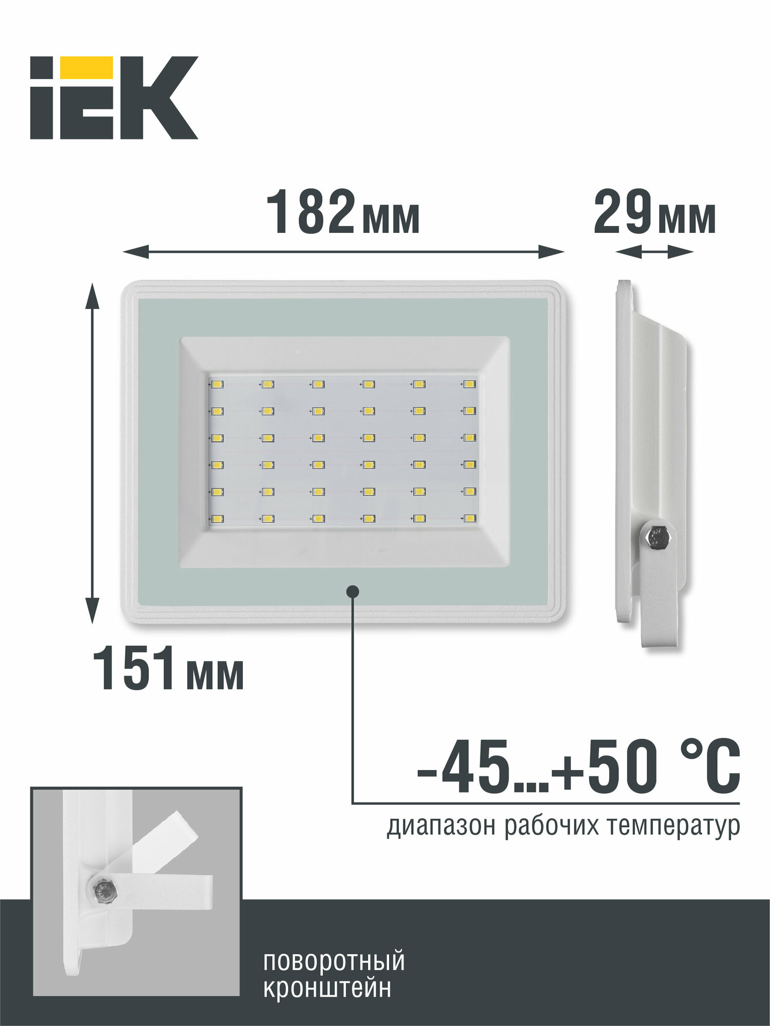 Прожектор светодиодный IEK 50Вт 6500К 4000Лм IP65 182х151х29 белый LED СДО 06-50