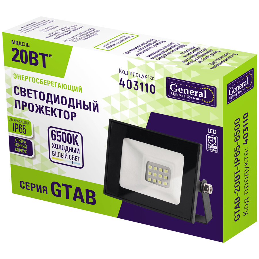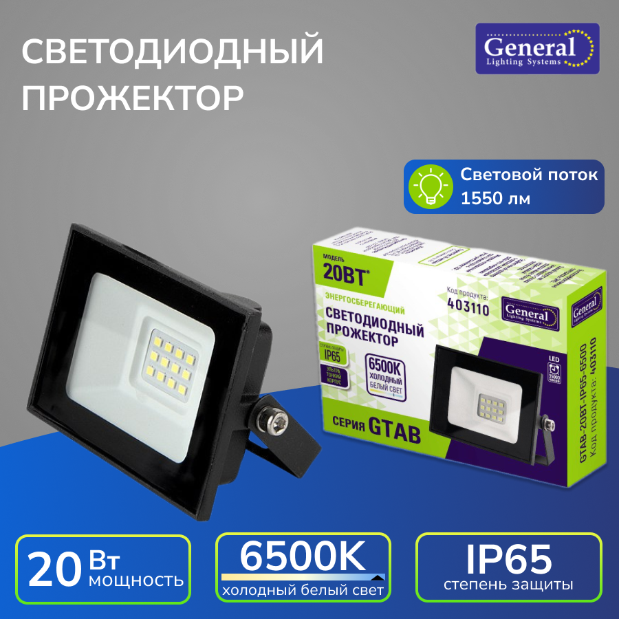 Светодиодный прожектор GTAB-20BT-IP65-6500, GENERAL 403110 (1 шт.)