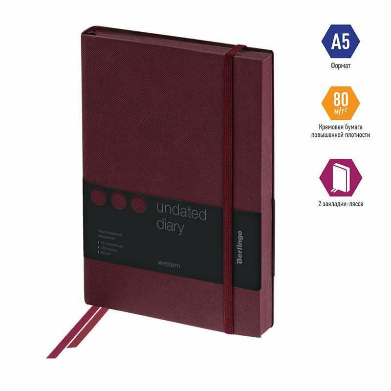 Ежедневник недатированный, А5, 136л, Berlingo "Western", с резинкой