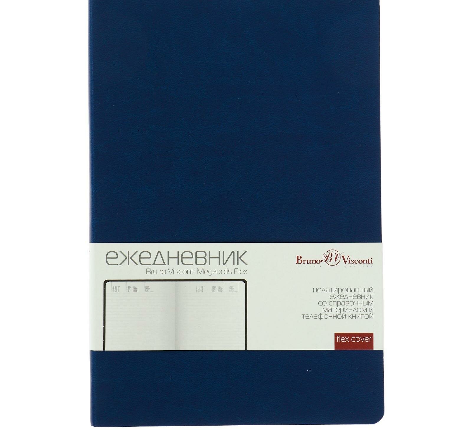 BrunoVisconti Ежедневник недатированный А5, 136 листов Megapolis Flex, обложка искусственная кожа, блок 70 г/м2, тёмно-синий
