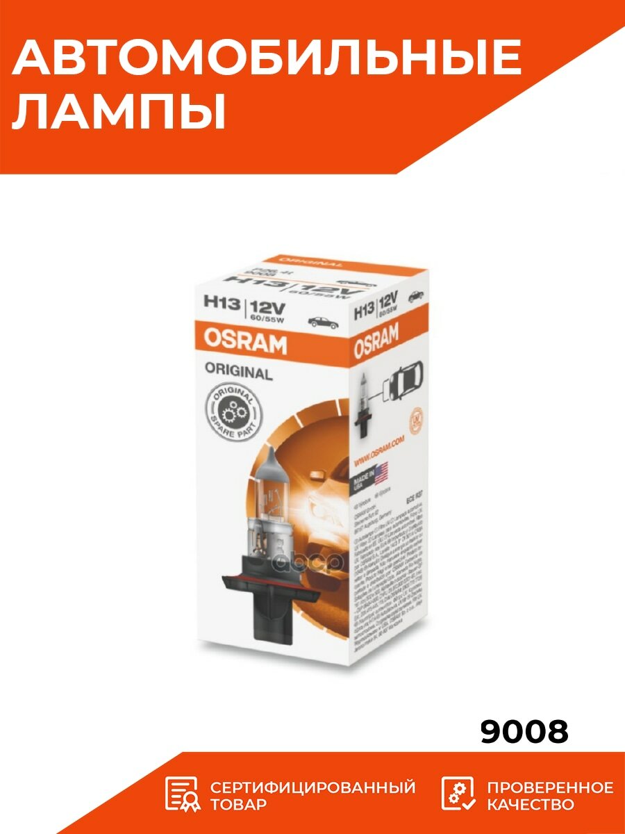 Лампа Галогеновая Головного Света H13 P26.4t Original 12v 60/55w Картон 1 Шт Osram арт. 9008