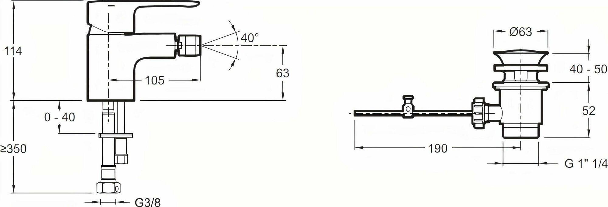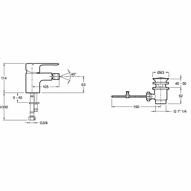 Смеситель Jacob Delafon July E16028-4-CP для биде с донным клапаном