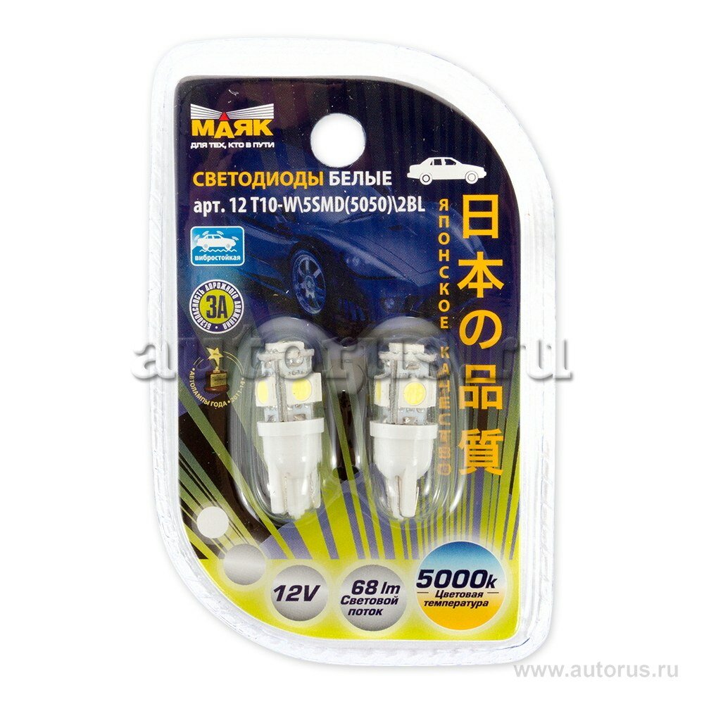 Лампа Светодиодная 12v Wb T10 Led 10w Маяк White 2 Шт. Блистер 12t10-W/5smd/2bl Маяк арт. 12T10W5SMD2BL