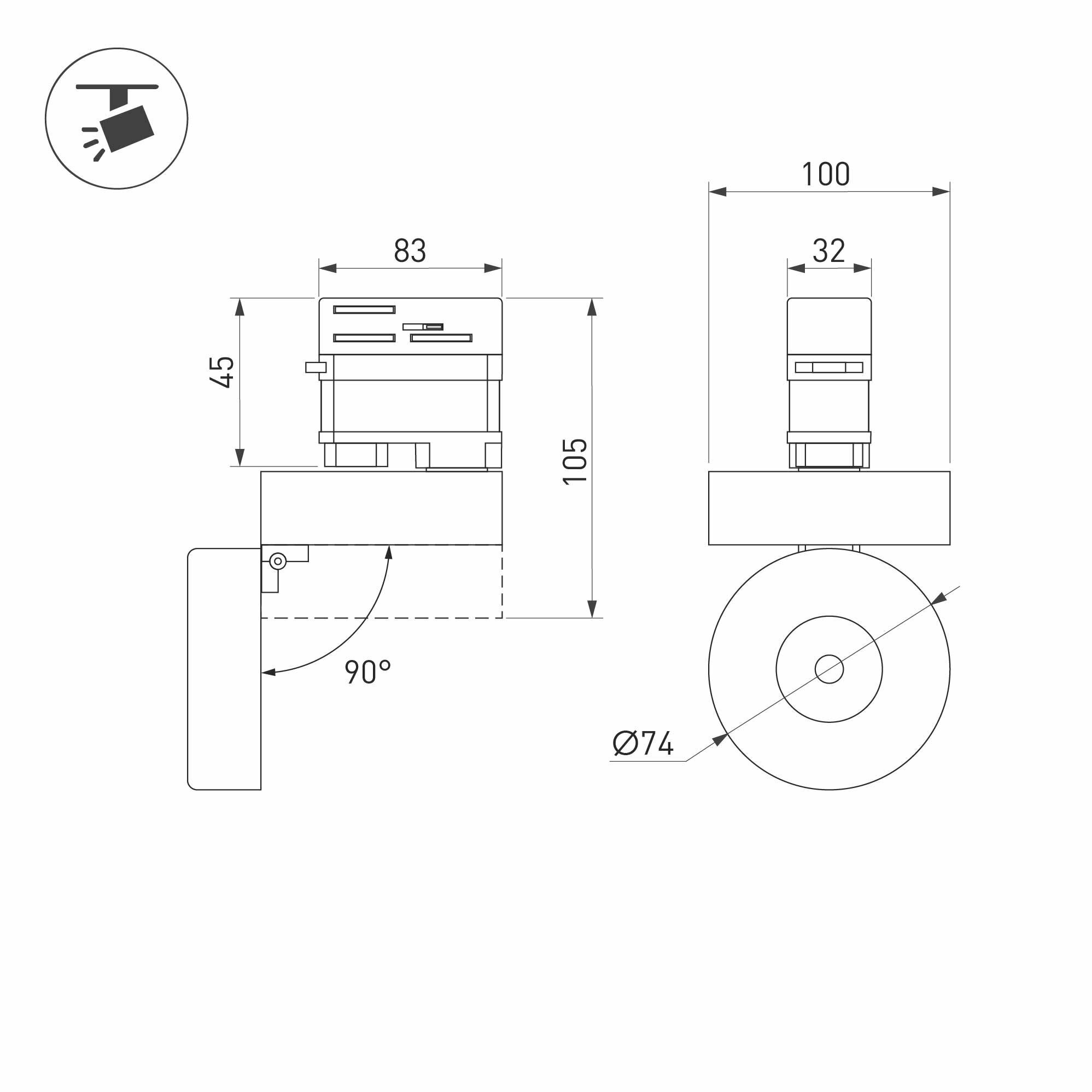 Светильник LGD-MONA-TRACK-4TR-R100-12W White5000 (WH, 24 deg) (Arlight, IP40 Металл, 3 года)