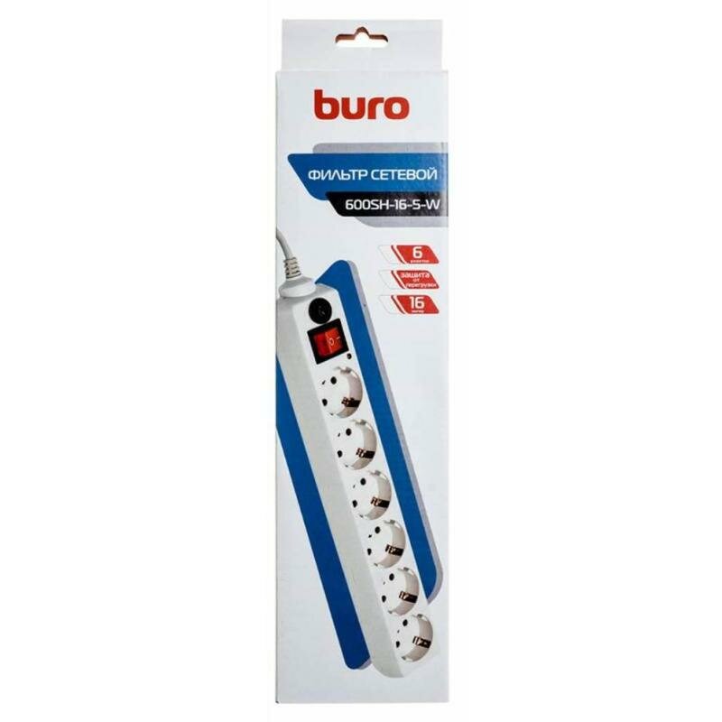 Купить Сетевой фильтр Buro 600SH-16-5-W 5м (6 розеток) белый (коробка)
